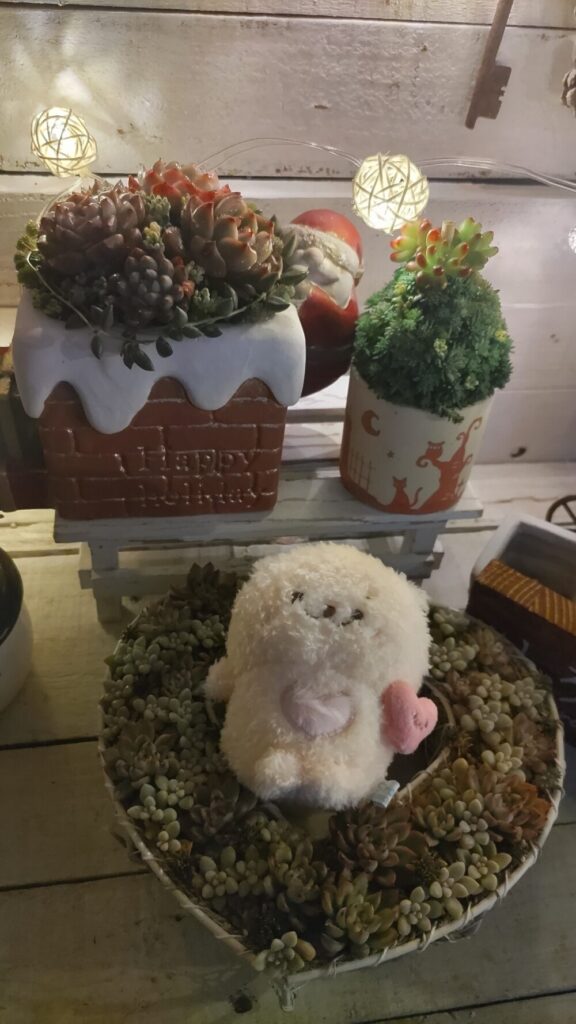 多肉園でクリスマスパーティー😂新しいぬいぐるみさんのためにセダムツリーを作りました
