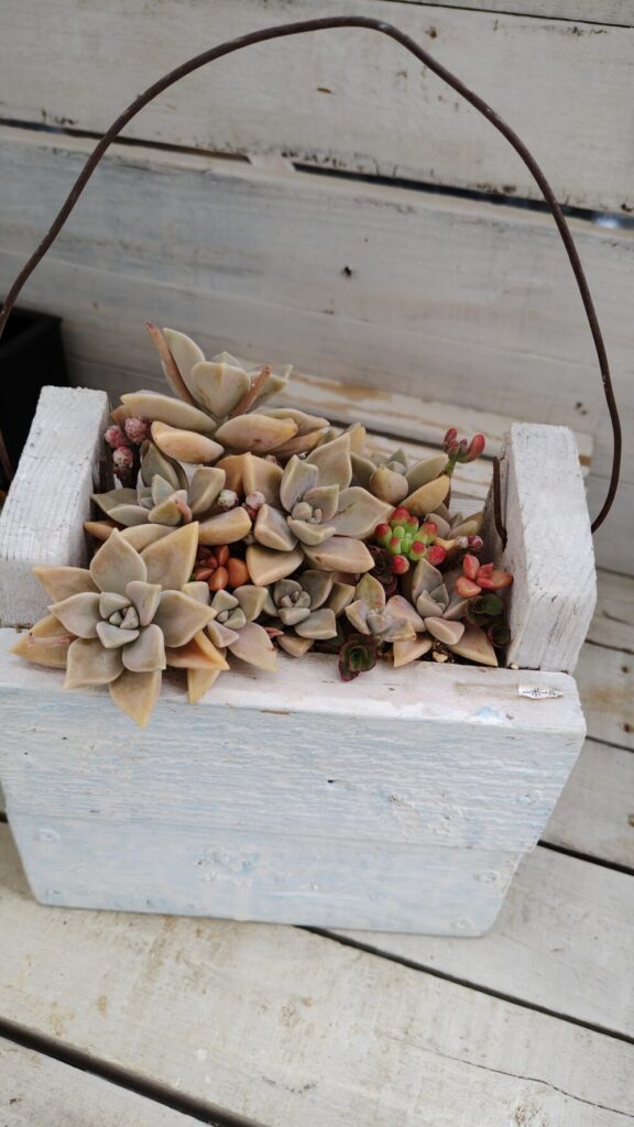 ↓壁に吊れるプランターに植えてみました
